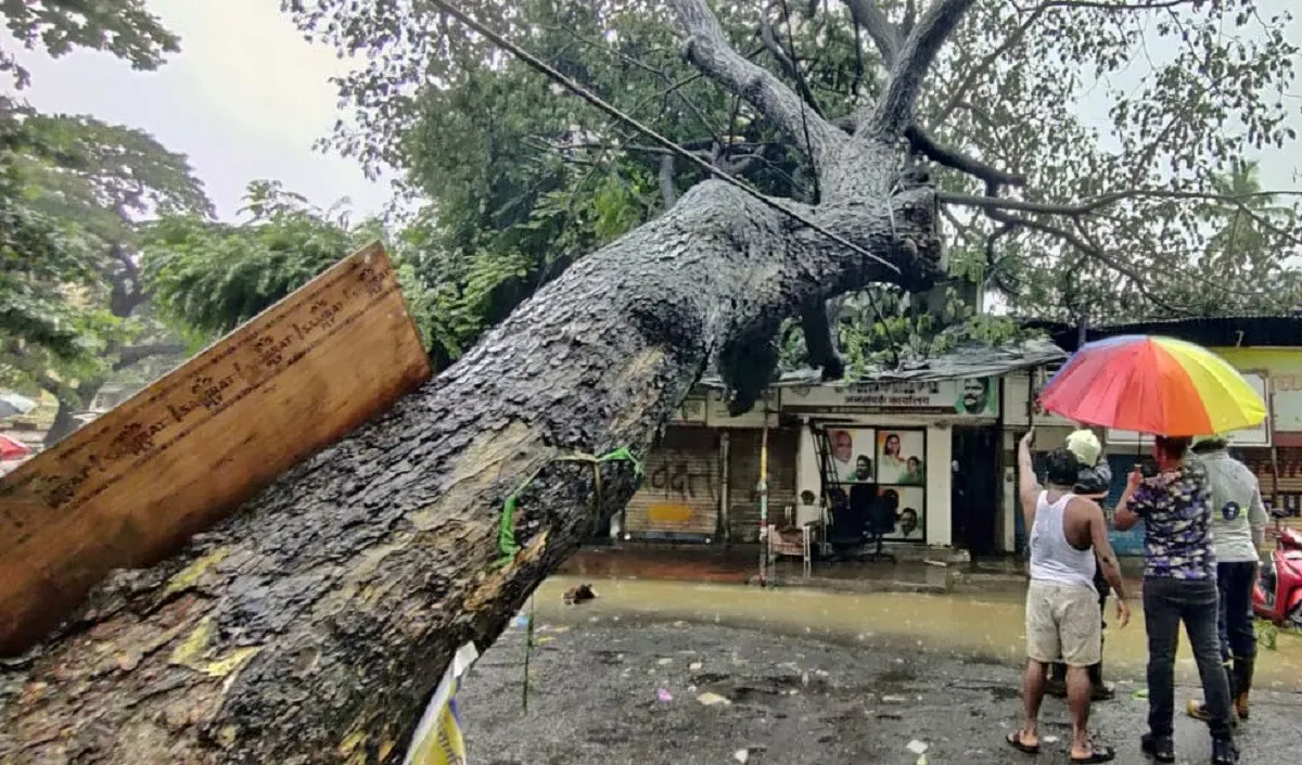 मुंबई के शिवाजी पार्क मैदान में बाल ठाकरे का लगाया हुआ पेड़ भारी बारिश के कारण गिर गया
