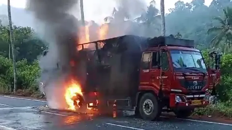 Malegaon: Truck caught fire due to short circuit, driver saved his life by jumping