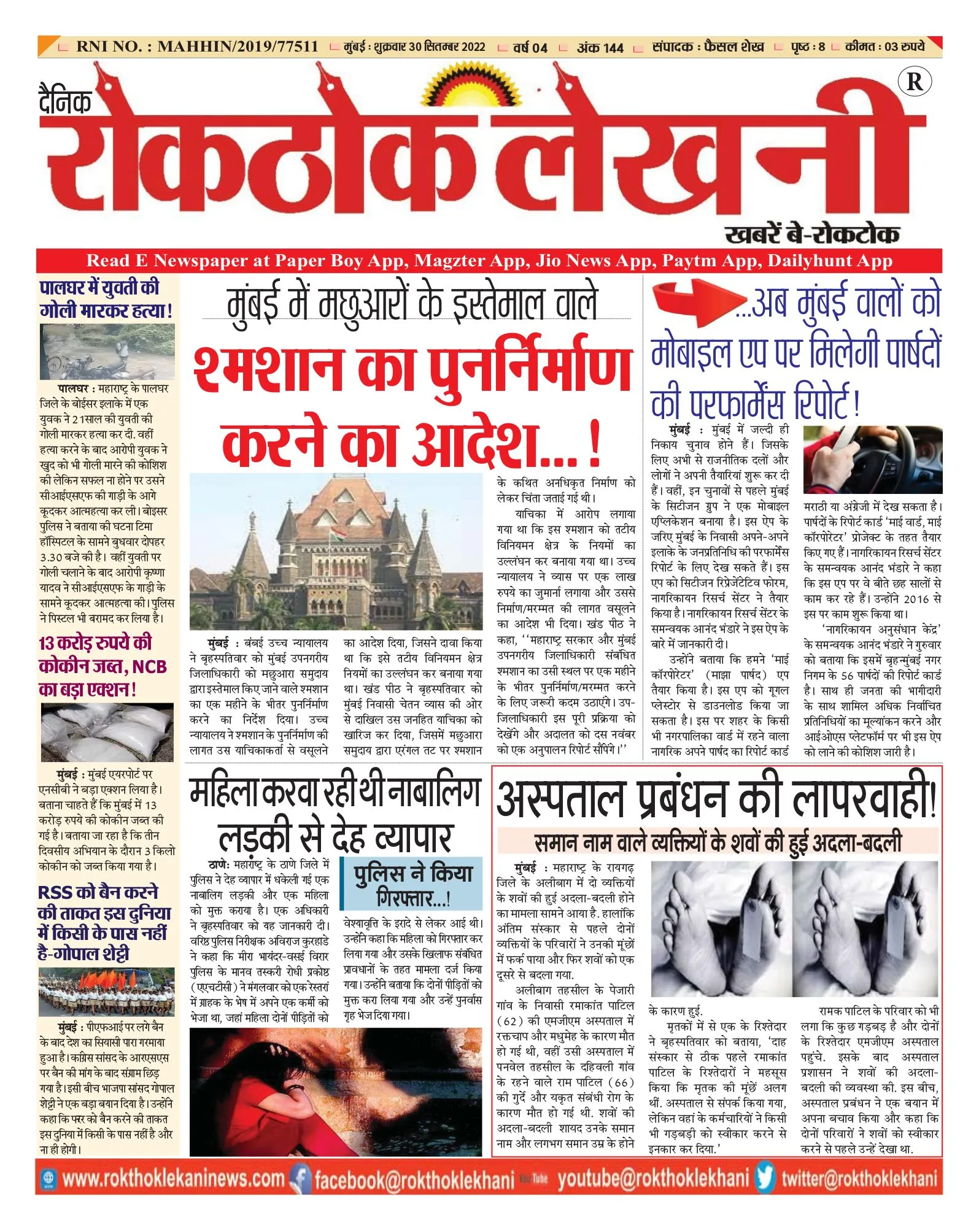 Rokthok Lekhani Newspaper 30 September 2022 - Page 1