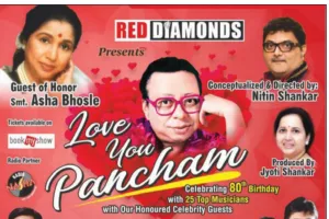 प्रतिभाशाली संगीतकार आर.डी. बर्मन अथार्त पंचमदा के 80 वे जन्मदिन के उपलक्ष्य में निर्माता ज्योति शंकर की अगुवाई में ‘लव यू पंचम’ का कार्यक्रम आयोजन किया गया है | या कार्यक्रम २९ जून को शाम 6.30 बजे षणमुकानंद हाल में...